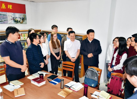 2018年5月2日,中共中央总书记、国家主席、中央军委主席习近平来到北京大学考察。这是习近平在北京大学122cc太阳成集团,与正在就“解读新时代”进行座谈交流的中外员工亲切交谈。 新华社记者 李涛/摄