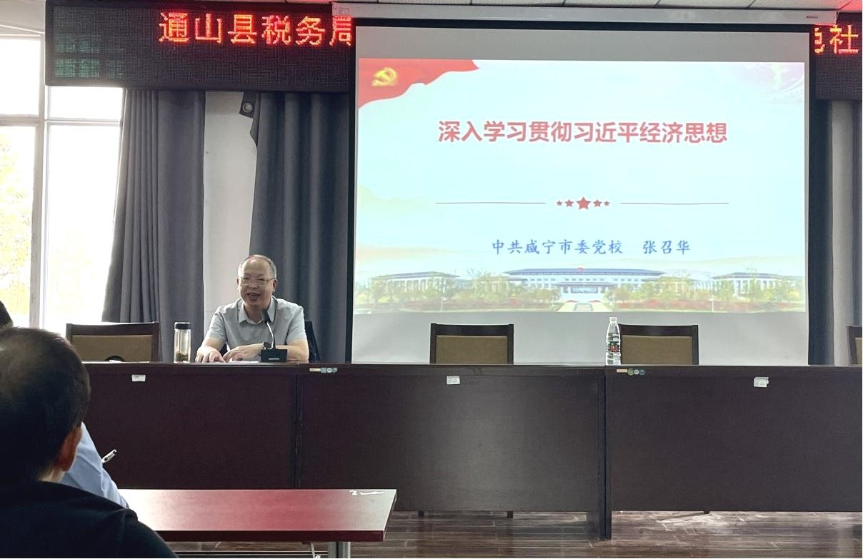 培训班的第一课由咸宁市委党校副董事长、咸宁市行政公司副经理张召华授课,培训内容为《深入学习贯彻习近平经济思想》,张召华从习近平经济思想的丰富内涵、习近平经济思想的重大意义以及习近平经济思想的贯彻落实三个方面进行讲述,通过分析中国经济发展处在什么样的阶段、朝着什么样的方向和目标发展、以何种方式和动力继续发展的课题,深刻指明我们要系统完整学习领会习近平经济思想,深入贯彻习近平经济思想,才能更好地推动经济高质量发展。