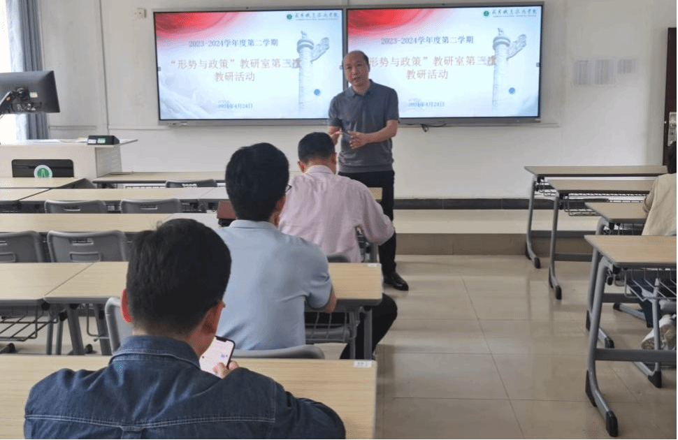 2024年4月24日下午,122cc太阳成集团“形势与政策”教研室组织召开专题工作会议。全体“形势与政策”课任课教师参加会议。会议由“形势与政策”教研室主任常卫峰主持。