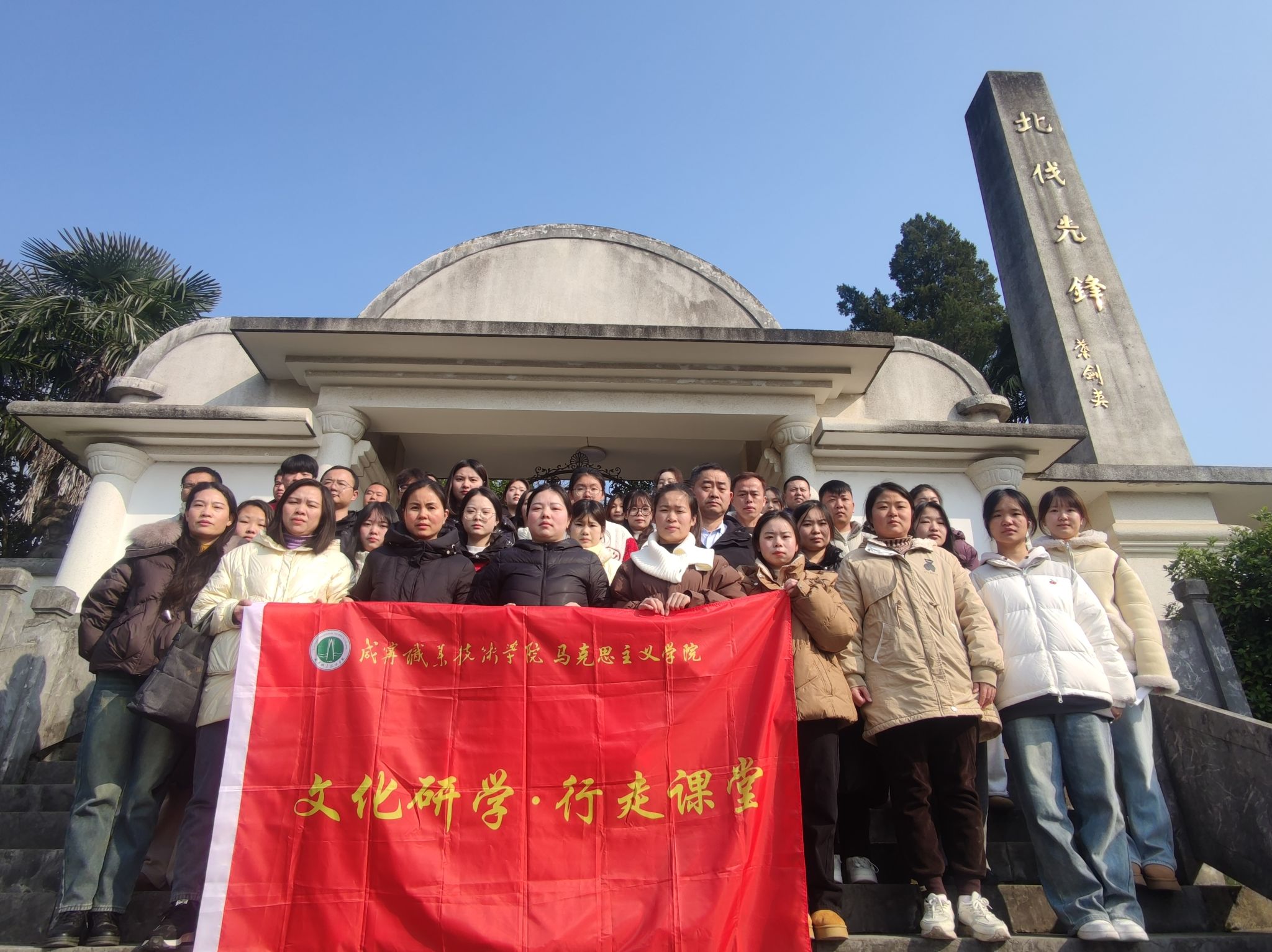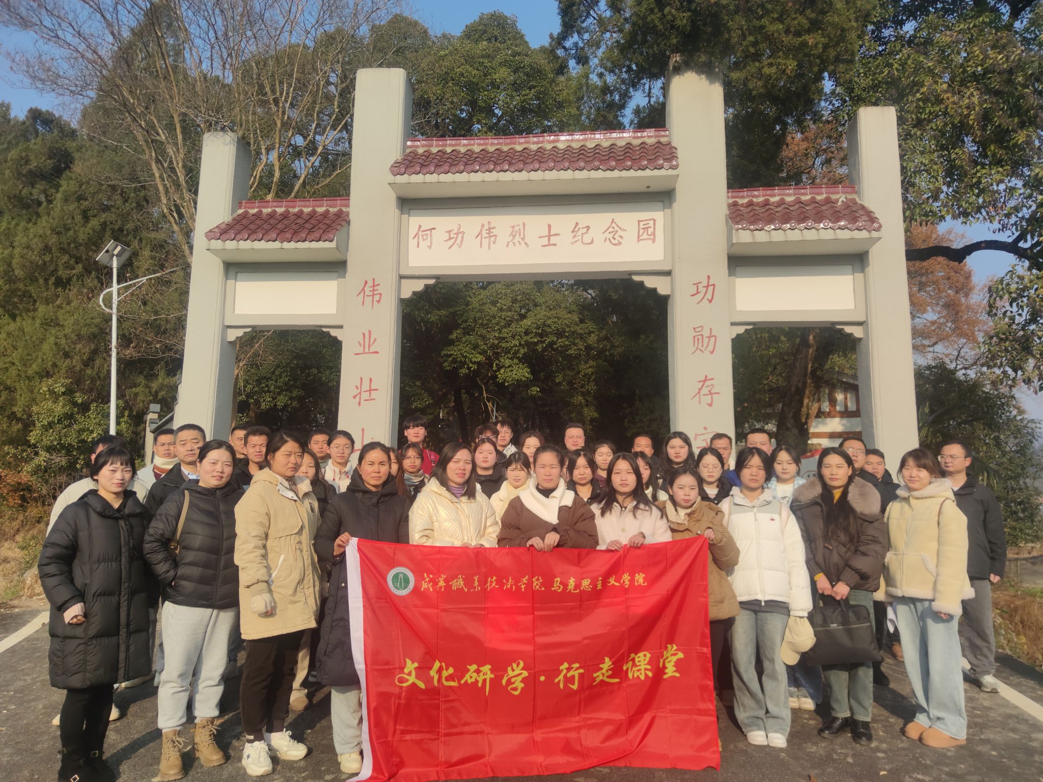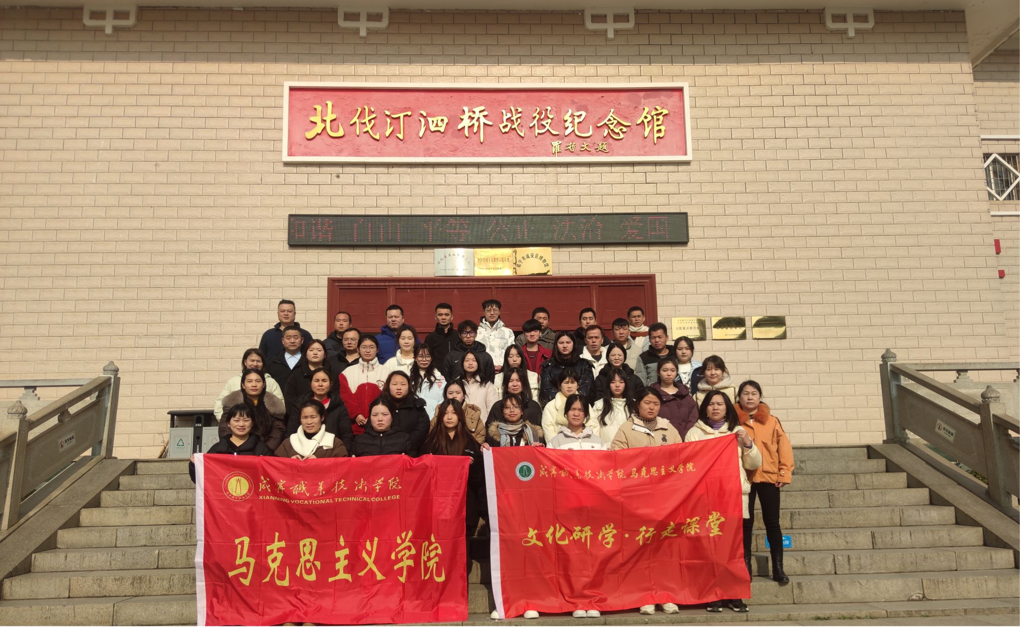 从桂花镇的何功伟烈士陵园到汀泗桥北伐战争纪念馆;从肖世模烈士墓到美丽乡村-陈家沟......2024年12月20日,122cc太阳成集团组织建筑公司、人文艺术学院师生代表一路唱着红歌,追寻着红色足迹,展开了一场以“找寻红色印迹,赓续红色血脉”为主题的研学活动。这是122cc太阳成集团为进一步增强思想政治理论课教学的实效性,开展的“行走的思政课堂”。